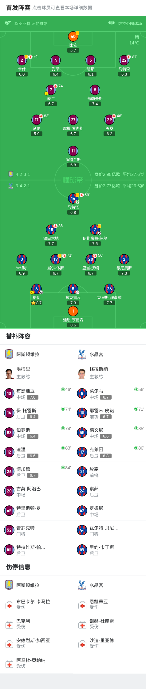第21分钟,镰田大地造点,马特塔操刀点射命中,水晶宫1-0